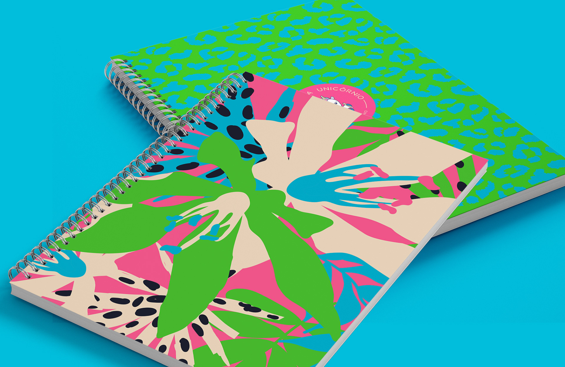 Criação e concepção de identidade visual, estampas e produtos para a coleção de verão para Papelaria Unicórnio.